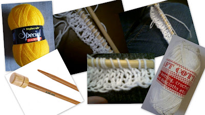 I did a quick fist pump, ran up the stairs (which I shouldn't do. And Mum if you're reading this, I'm sorry.) and did a knee slide across the floor to my yarn box (or, the rectangularcubething for any of you who were reading on Friday). In all the excitement of having my own victim pupil, I pulled out some white cotton (which says it is Aran weight but it is really DK) and a pair of 7mm plastic needles. Which really didn't work, as the needles were far too big for the yarn. Meaning it looked holey (is that even a word?!), when it should have been nice and neat.