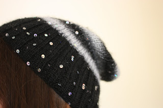 I chose to use King Cole Galaxy in two colourways, Venus (plain black, for the brim) and Jupiter (a gradient of black and grey, for the body). It also had the added bonus of sequins, giving it an extra sparkle.