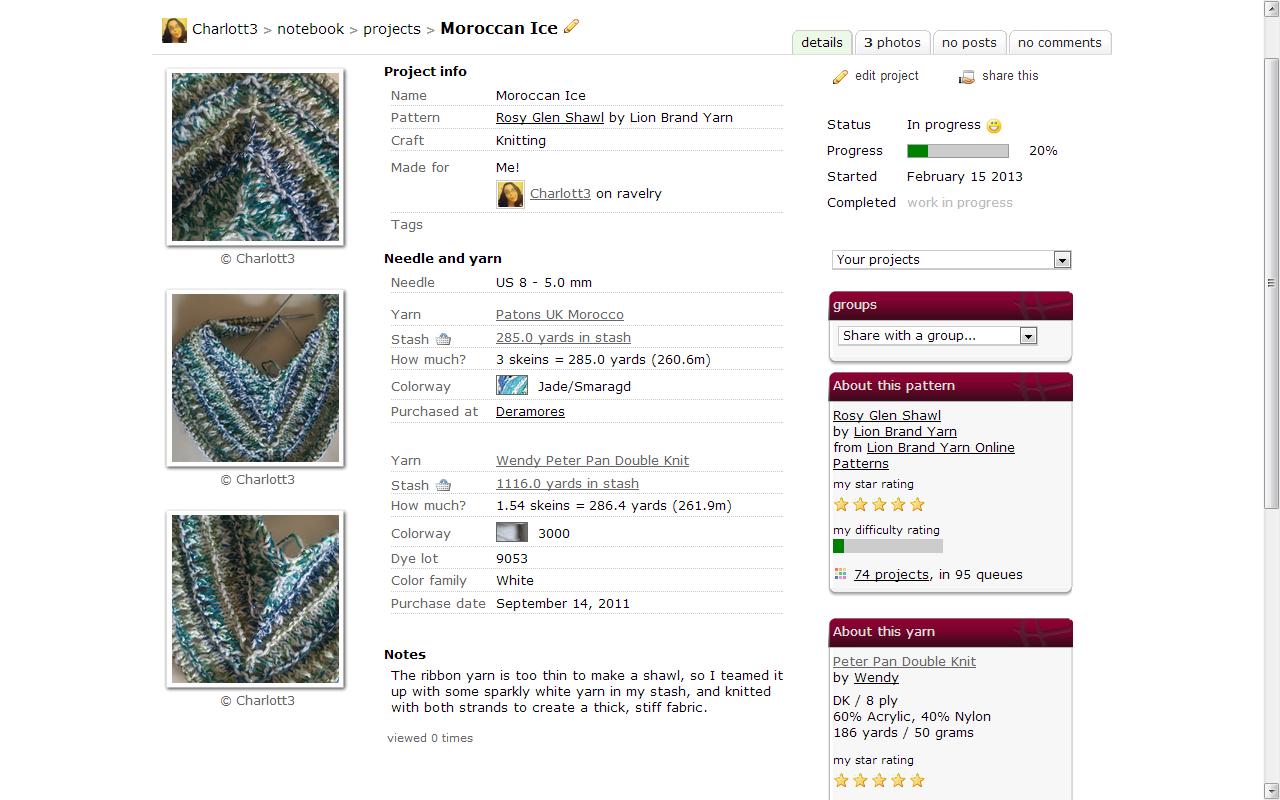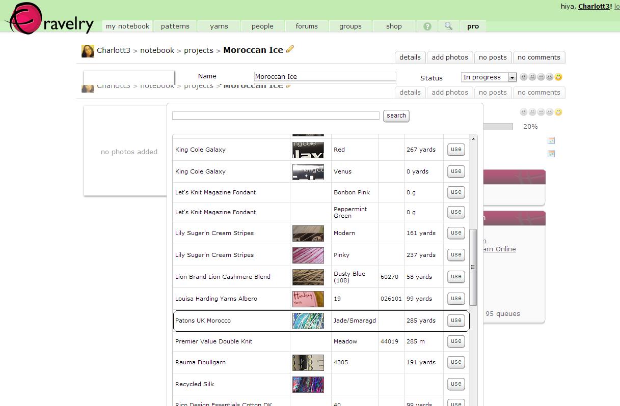 If you don't have your yarn stashed, don't worry! Just add it on the project page like so: